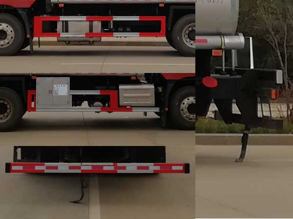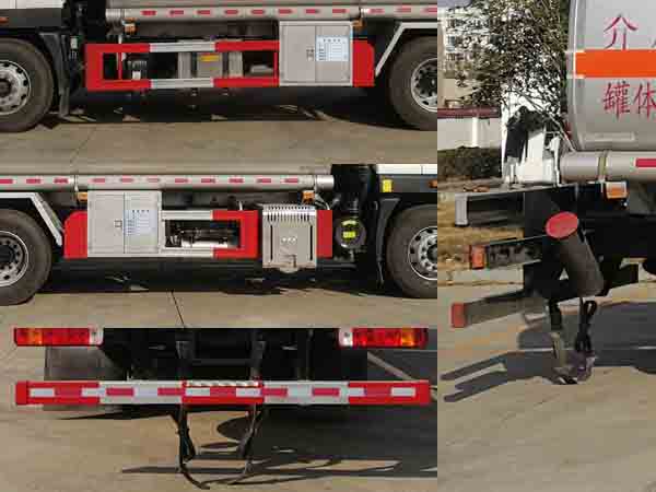 配置  1、該車適用于危險品運輸,運送危險貨物車輛類型為:FL型,類項號:3。運輸介質:汽油,密度:700千克/立方米。罐體有效容積21.4立方米,罐體外形尺寸(長×寬×高)(mm):7000×2350×1580。2、側、后防護材料均為Q235,螺栓連接;后防護截面尺寸(寬×高)(mm)60×120,下邊緣離地高500mm。3、EBS系統生產廠家及型號分別為:威伯科汽車**系統(**)有限公司(EBS3)。僅選用排氣管前置、限速裝置(限速79km/h)、前輪盤式制動及子午線輪胎的底盤;安裝帶有衛星定位功能的行駛記錄儀;發動機型號及油耗值(L/100km)為:WP7.270E61/36.79,WP7.300E61/36.79。后軸采用空氣懸架。轉向輪安裝輪胎爆胎應急防護裝置。