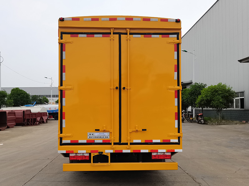 其它:該車主要專用裝置有遠程供排水泵,用于應急供排水搶險作業(yè).車廂頂部封閉不可開啟.側防護由車身結構代替,后防護材料為Q235,焊接連接,截面尺寸(mm):140×80,下邊緣離地高度410mm.僅選用軸距3800mm.隨底盤選裝駕駛室.ABS型號/生產廠家:ABS/ASR-24V-4S/4M/襄陽東風隆誠機械有限責任公司.隨底盤選裝限速裝置,限速89km/h.