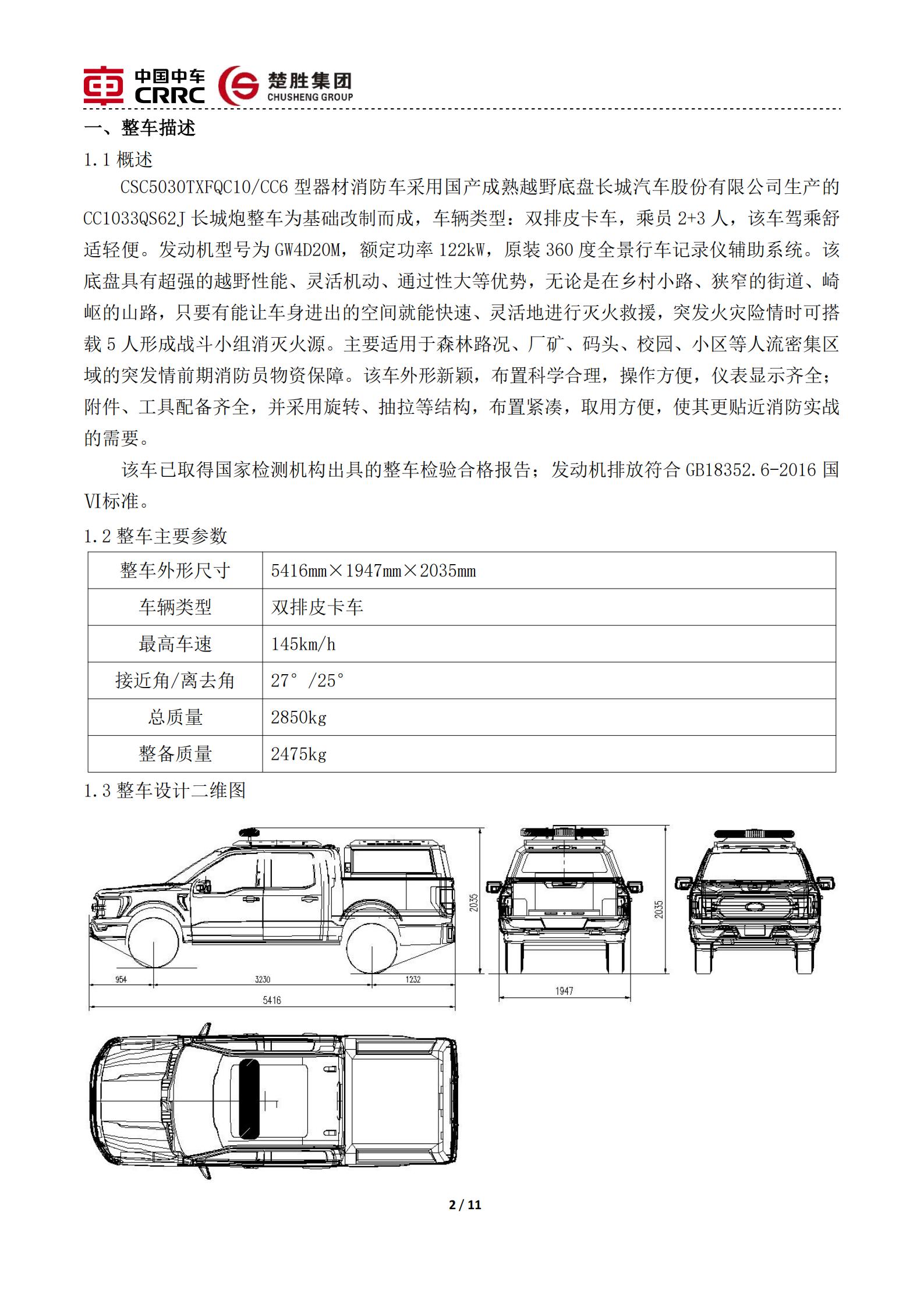 楚勝牌 CSC5030TXFQC10/CC6 型器材消防車