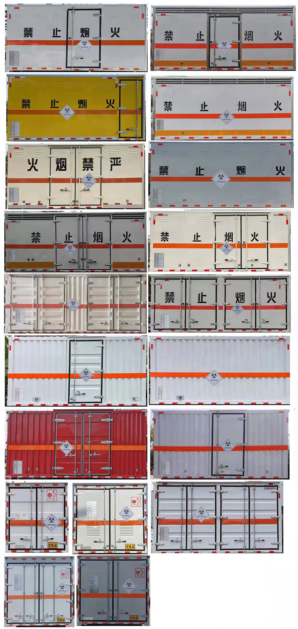 | 其它: | 1、該車適用于運輸危險品。廂體頂部封閉不可開啟。運輸具有獨立容器(瓶)包裝的物品,運送危險物品類項號:6.1,6.2。2、側,后防護材料均為Q235,螺栓連接;后防護截面尺寸100×50mm,下邊緣離地高410mm。廂體側面選裝開門型式及位置,選裝不帶側開門,選裝瓦楞板結構;選裝百葉窗。3、隨底盤選裝排半駕駛室。僅選用排氣管前置、限速裝置(限速80km/h)、前輪盤式制動及子午線輪胎的底盤;轉向輪裝備輪胎爆胎應急防護裝置。安裝帶衛星定位功能的行駛記錄儀。ABS系統型號:ABS-VI.E;生產企業:廣州瑞立科密汽車電子股份有限公司;ABS系統型號:ABS-E;生產企業:威伯科汽車控制系統(中國)有限公司;ABS系統型號:ABS8.8 ECU 24V,生產企業:東科克諾爾商用車制動系統(十堰)有限公司;發動機/油耗值(L/100km)對應關系為:CY4SK261/16.09,D30TCIF1/16.19,F2.8NS6B156/15.39,F3.8NS6B156/14.90。可選裝ETC車載裝置。 | ||