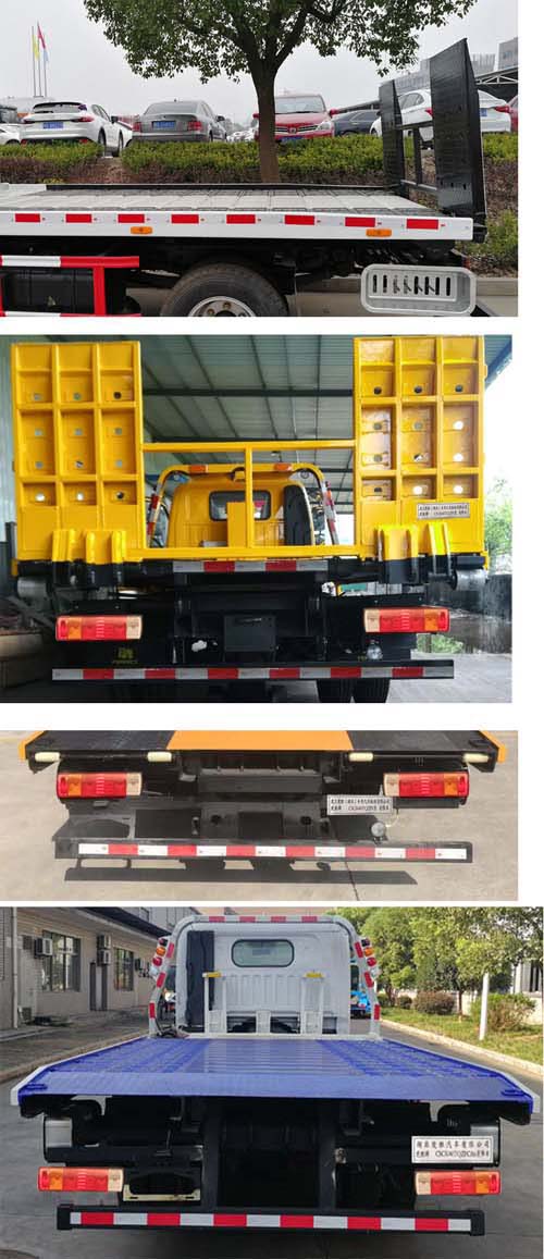 | 配置 | 該車主要用于道路摩托車清障,主要專用裝置為平板、絞盤、鋼絲繩、油缸。托舉質量:500kg;側防護采用冷彎型鋼/Q235,螺栓連接;后防護采用冷彎型鋼/Q235,焊接,截面尺寸100×50mm,離地高450mm。平板后部選裝上尾板及選裝無上尾板。隨底盤選裝排半駕駛室,選裝改側窗的駕駛室,選裝新前臉駕駛室,選裝不同的側門結構,選裝新結構的保險杠。ABS防抱死制動系統生產廠家/型號:1.廣州瑞立科密汽車電子股份有限公司/CM4XL-4S/4M;2.浙江萬安科技股份有限公司/VIE ABS-II。選裝龍門架樣式。 | ||