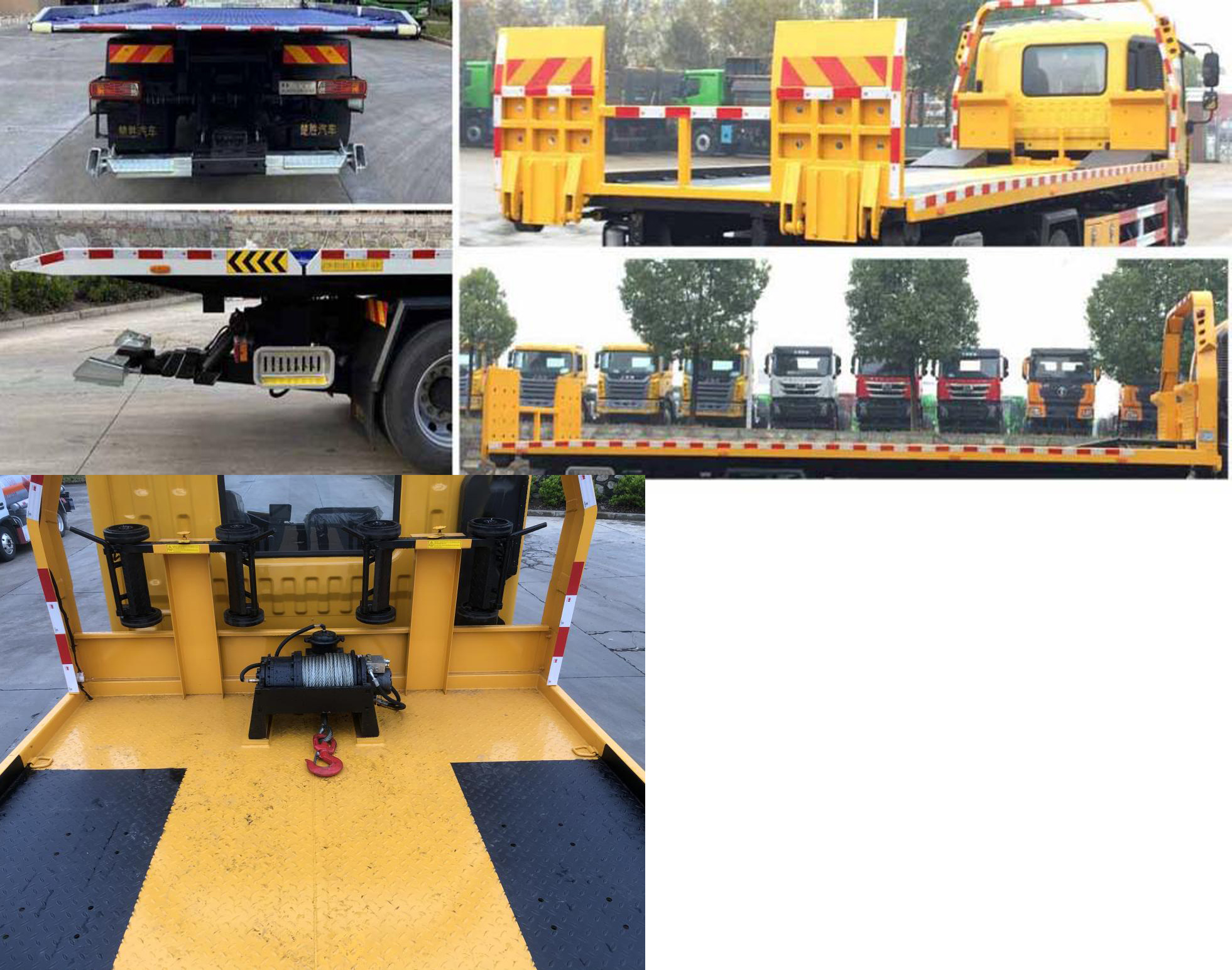 | 配置 | ABS型號:ABS-E,ABS/ASR-24V-4S/4M,CM4XL-4S/4M/廣州瑞立科密汽車電子股份有限公司;ABS生產企業:威伯科汽車**系統(**)有限公司,東科克諾爾商用車制動系統(十堰)有限公司,廣州瑞立科密汽車電子股份有限公司;選裝部件名稱及其相關描述:選裝后部站板及站板樣式,選裝龍門架樣式;所用材料材質、連接方式以及后部防護裝置的主要尺寸參數(斷面尺寸和離地高度):側防護材料采用Q235,螺栓連接;后防護由專用裝置替代,下邊緣離地高490mm;專用功能及裝置描述:該車主要用于道路清障,主要專用裝置為平板、托臂、絞盤、鋼絲繩、油缸;托舉質量(kg):準乘人數2人時,整備質量(kg)/托舉質量(kg)對應關系為:11000/6870,10000/7870,9000/8870;準乘人數3人時,整備質量(kg)/托舉質量(kg)對應關系為:11000/6805,10000/7805,9000/8805;隨底盤選裝駕駛室。選裝平板樣式,托臂樣式。選裝絞盤安裝位置。 | ||