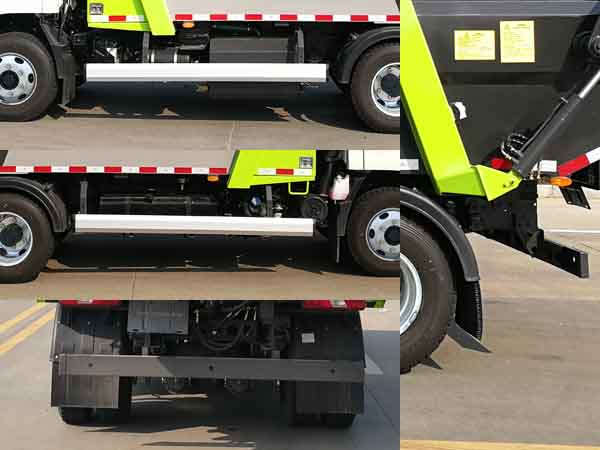 配置  后伸195mm,該車用于垃圾轉運,主要專用裝置為箱體,壓縮系統(tǒng)。側防護材料為鋁合金,螺栓連接;后防護材料為Q235,焊接,截面尺寸:120mm×50mm,離地高度:450mm。隨底盤選裝黑色輪輞。ABS系統(tǒng)型號:VIE ABS-II,ABS系統(tǒng)生產廠家: 浙江萬安科技股份有限公司。發(fā)動機JX4D306H的油耗值為14.5L/100km。