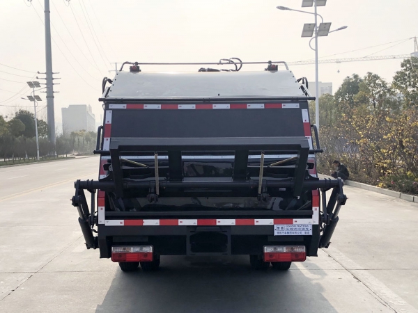 垃圾車箱有效容積6立方米,弧形車廂,材料采用邊3底4mm厚,9支液壓油缸制動,液壓控制操作系統為電動控制和手動控制。手動控制是防止電控發生故障時也能夠正常工作。裝載循環為一鍵操作,車尾左右各一套,駕駛室內部一套電動卸料操作系統,帶后翻轉機構,可掛塑料桶,填充器底部污水收集箱,車箱內的污水可流入其中,在卸垃圾時可通過球閥排出,采用海戰力油缸,揚州中梅的多路閥,CAN操作,其余標配。