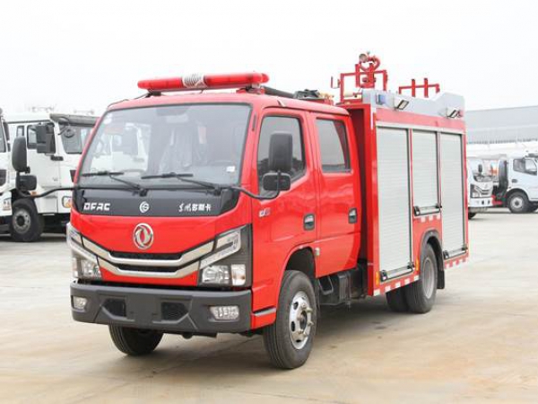 2噸水罐消防車采用東風汽車股份有限公司EQ1075DJ3CDF 型二類汽車底盤,原裝雙排駕駛室,乘員2+3人,該車駕乘舒適輕便。上裝采用內藏式水罐,整車載液量為2160kg。器材箱采用高質量鋁合金卷簾門。底盤取力,發動機型號為H20-120E60,最大功率90kW,通過萬向聯軸器驅動安裝在汽車尾部泵房里的上海雄真CB10/20型常壓消防泵,可在1.0MPa下穩定輸出20L/s的流量;車頂安裝章丘瑞江PS8/20型消防炮,流量20L/s,對應壓力0.8MPa,最大承壓1.3MPa,射程50m,可360°旋轉。該車具有軸距短、通過性強、綜合性能強、操控集中簡便等特點。